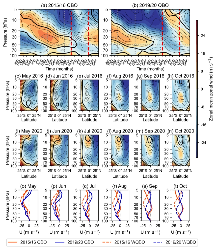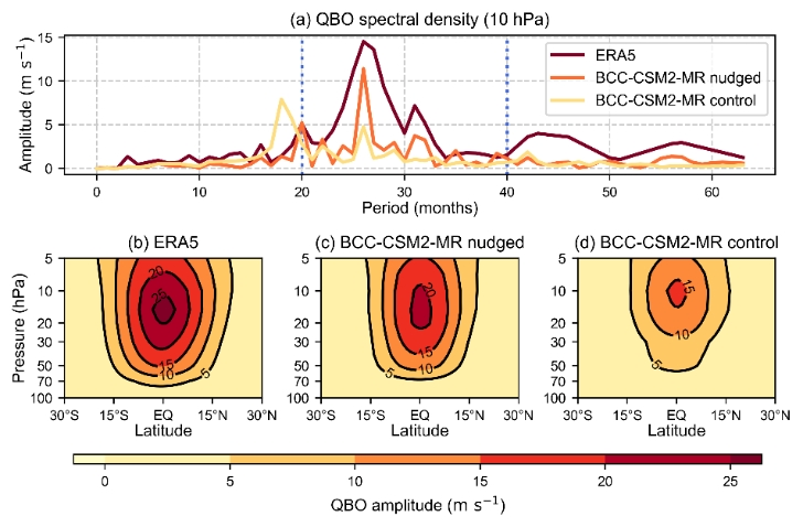 近日,南京信息工程大学临近空间环境特性及效应全国重点实验室饶建教授团队在国际期刊《Advances in Atmospheric Sciences》上发表了题为“QBO Disruption–like Events in the China Meteorological Administration (CMA) Climate Mode”的研究论文。该研究利用中国气象局自主研发并参加平流层准两年振荡模拟计划(QBOi)的全球气候模式BCC-CSM2-MR,在热带平流层风场中引入nudging技术,并系统优化重力波参数化方案;基于此框架深入剖析QBO切断事件发生发展机制,力求为理解QBO切断与波流相互作用之间的关系提供独特视角,从而提升模式再现QBO切断能力。