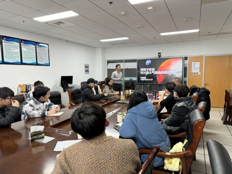 此次学术报告以“等离子体波对火星大气逃逸的潜在贡献”为题,讲述了火星诱发磁层的等离子体波动及其对火星大气逃逸的潜在贡献。苏教授的本次报告介绍了美国MAVEN和中国Tianwen-1卫星在激波前兆区、诱导磁层和岩壳微磁层中的若干等离子体波观测,以及作为空间等离子体中能量传输和耗散的普遍过程的波粒相互作用等,讨论了这些波动对火星大气逃逸的潜在贡献。