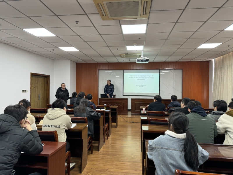 此次学术报告以“Dependence of Major Geomagnetic Storms on the Associated Solar Wind Parameters”为题,讲述了大磁暴与相应太阳风参数的相关性。乐老师本次报告介绍了国内外同行在研究太阳风参数与磁暴强度关系方面采用的计算方法,得到的结果与存在的问题,以及乐老师团队在该领域方面开展的研究工作和取得的成果,分析后续的研究思路和预期的科研目标。
