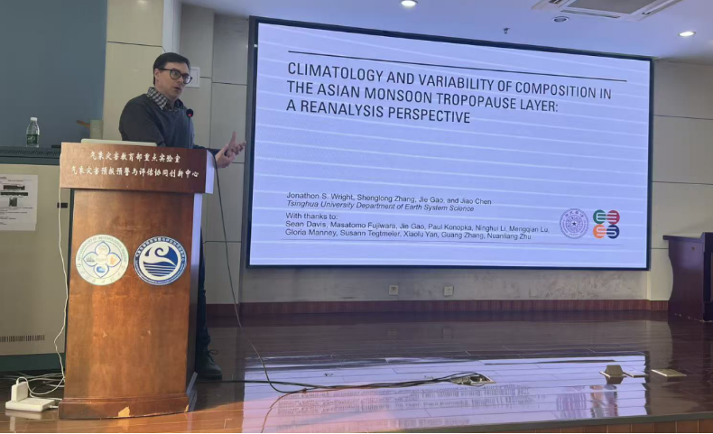 12月17日上午,清华大学地球系统科学系Jonathon S. Wright副教授应邀作客在气象楼423会议室带来题为《Climatology and variability of composition in the Asian monsoon tropopause layer(亚洲季风对流层顶区域成分的气候学特征与变率)》的精彩学术报告。本期报告由虞越越教授主持,吸引了来自校内外的众多师生参与,线上线下气氛热烈。
