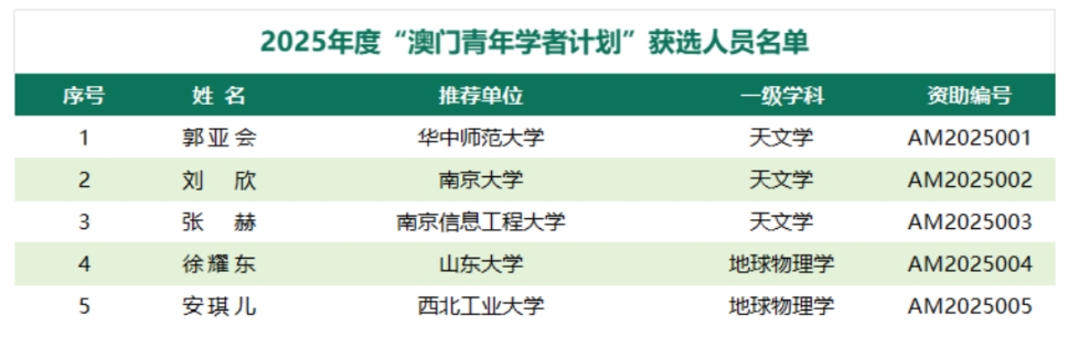"澳门青年学者计划"是由全国博士后管委会办公室与澳门科学技术协进会联合实施的重要人才培养项目。该项目每年遴选内地优秀博士前往澳门地区的高校及科研机构开展合作研究,通过严格的初评和终评程序,最终确定入选人员。2025年度共评选出30名优秀青年学者,获得该项目资助。